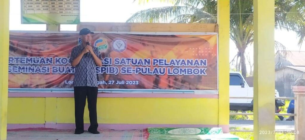 Dari rapat koordinasi dan pelaporan PMK tahun 2023, Kepala Dinas Peternakan dan Kesehatan Hewan Provinsi NTB, Muhamad Riadi melanjutkan kegiatan menghadiri Pertemuan Koordinasi Satuan Pelayanan Inseminasi Buatan (SPIB) Se-Pulau Lombok yang dilaksanakan di Kelompok Tani Pide Lestari Dusun Pidada Desa Sintung Kecamatan Pringgarata Kabupaten Lombok Tengah,