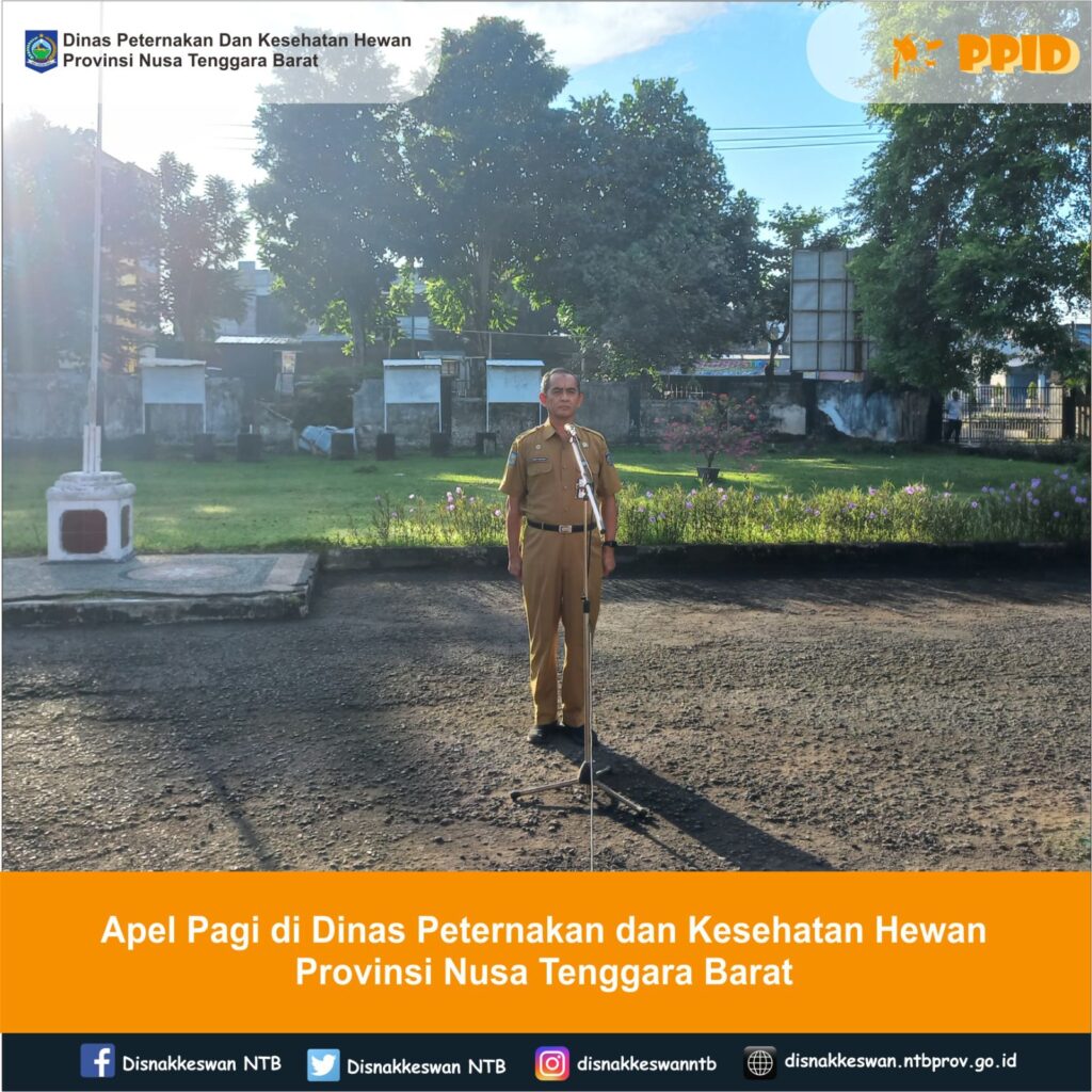 Plt Kepala Dinas Peternakan dan Kesehatan Hewan Provinsi NTB, H. Ahmad Mashyuri, S.H memimpin langsung kegiatan apel pagi serta memberikan pengarahan kepada seluruh karyawan/karyawati lingkup Dinas Peternakan dan Kesehatan Hewan Provinsi NTB, Senin 5 Mei 2025.