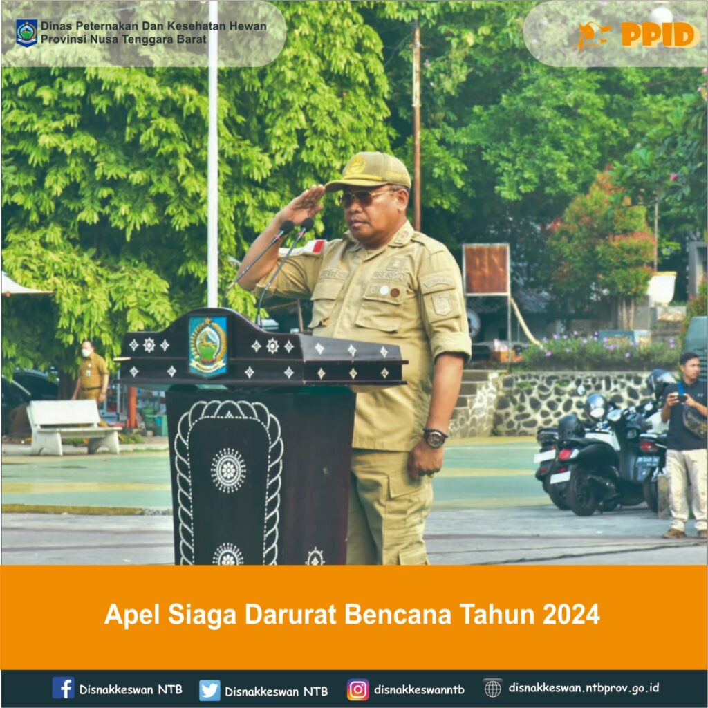 Kepala Dinas Peternakan dan Kesehatan Hewan Provinsi NTB, Muhamad Riadi, S.P, M.Ec.Dev menghadiri Apel Siaga Darurat Bencana Tahun 2024 yang dipimpin langsung oleh Sekretaris Daerah Provinsi NTB, Drs. H. Lalu Gita Ariadi, M.Si yang bertempat di Lapangan Umum Sangkareang Kota Mataram, Senin 25 November 2024.