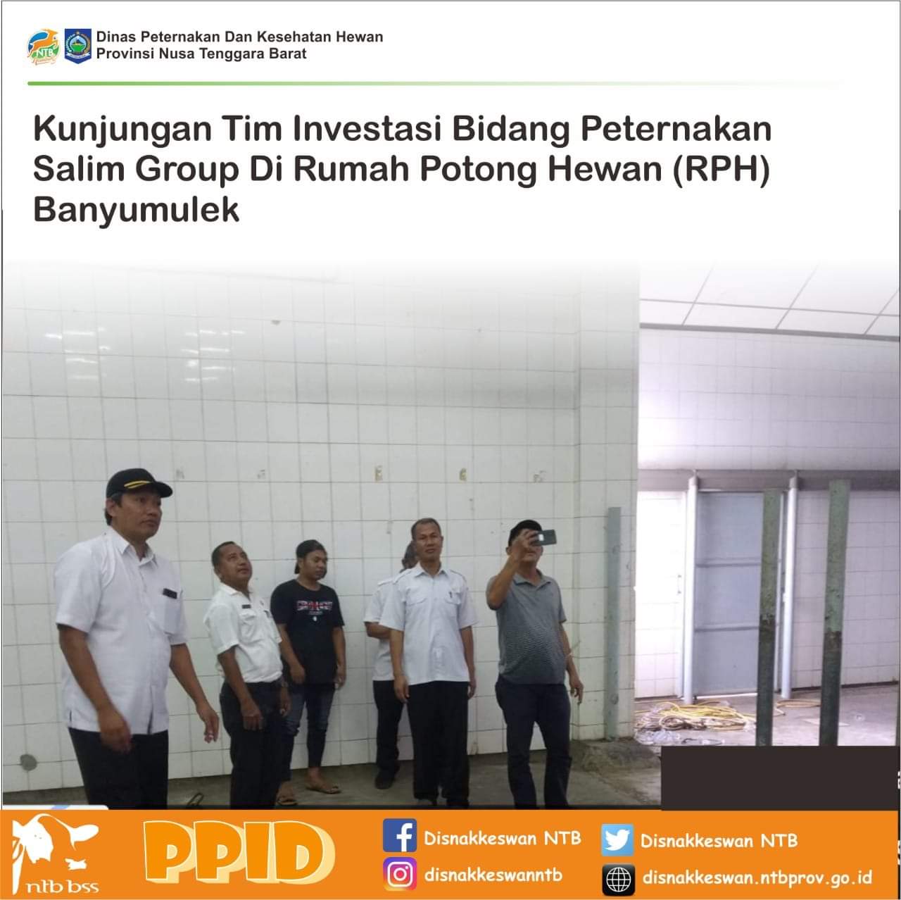 KUNJUNGAN TIM INVESTASI BIDANG PETERNAKAN SALIM GROUP DI RUMAH POTONG HEWAN (RPH) BANYUMULEK Kepala Dinas Peternakan dan Kesehatan Hewan Provinsi NTB Ahmad Nur Aulia di dampingi Sekretaris, para Kepala Bidang dan Kepala UPTD bersama...