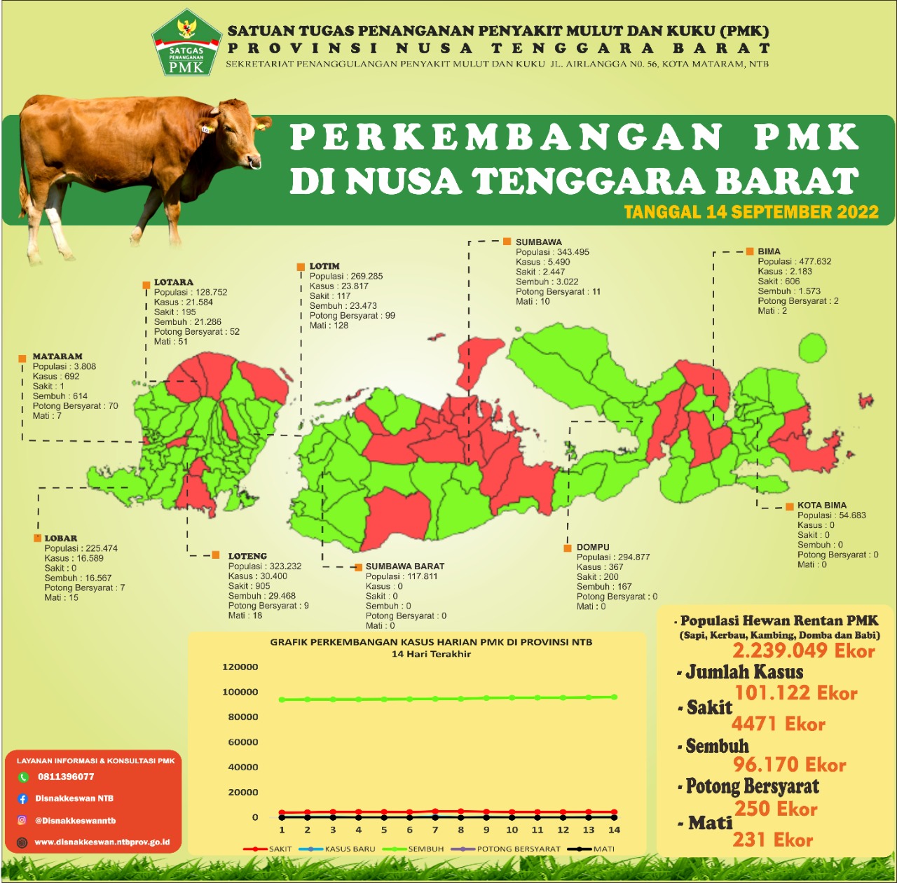 Update Data Perkembangan PMK di Provinsi NTB Per tanggal 14 September 2022