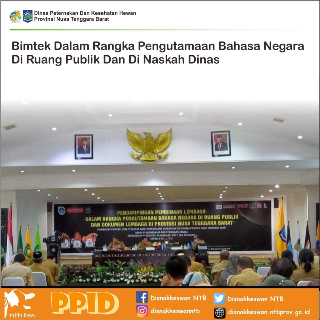 BIMTEK DALAM RANGKA PENGUTAMAAN BAHASA NEGARA DI RUANG PUBLIK DAN DI NASKAH DINAS Pemerintah Provinsi Nusa Tenggara Barat (NTB) bekerjasama dengan Kantor Bahasa Provinsi NTB melaksanakan kegiatan Pendampingan Pembinaan Lembaga, di Gedung Graha Bhakti,...