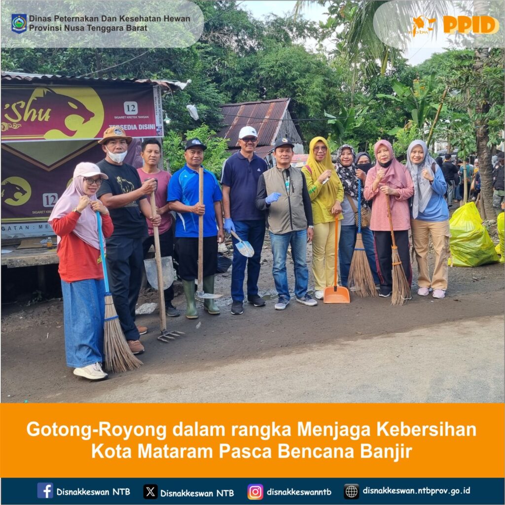 Selasa, 8 Juli 2025. Dinas Peternakan dan Kesehatan Hewan Provinsi Nusa Tenggara Barat dibawah komando Sekretaris Dinas Lalu Amjad, S.H, M.H melaksanakan gotong royong dalam rangka menjaga kebersihan Kota Mataram pasca bencana banjir dimana kantor Dinas Peternakan dan Kesehatan Hewan Provinsi Nusa Tenggara Barat mendapat lokasi di daerah Kebon Duren Selagalas Kota Mataram.