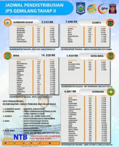 Berikut adalah Jadwal Pendistribusian JPS Gemilang Tahap II Provinsi NTB di 10 Kabupaten/kota di NTB :