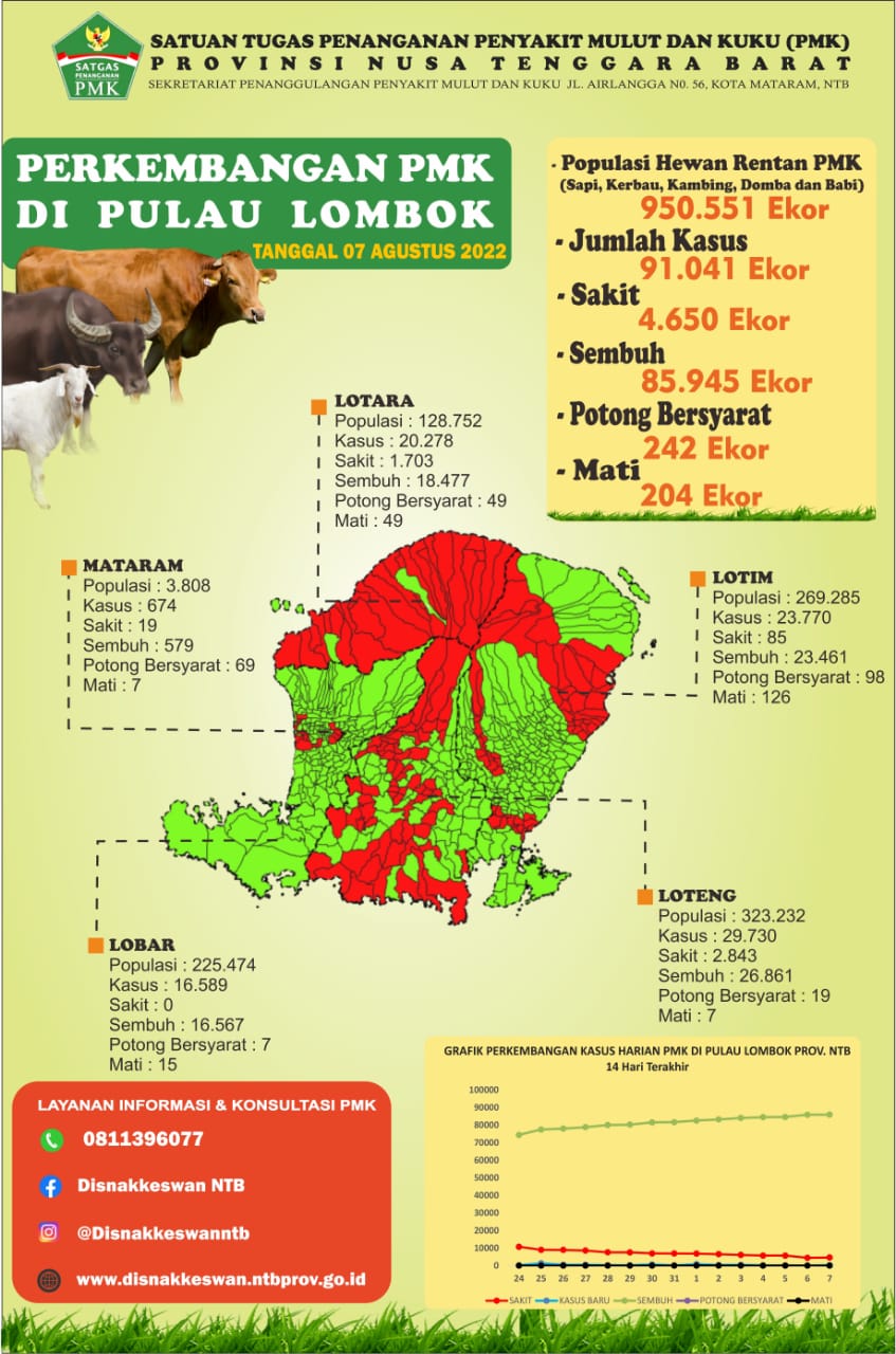 Update Data Perkembangan PMK di Pulau Lombok Per tanggal 7 Agustus 2022