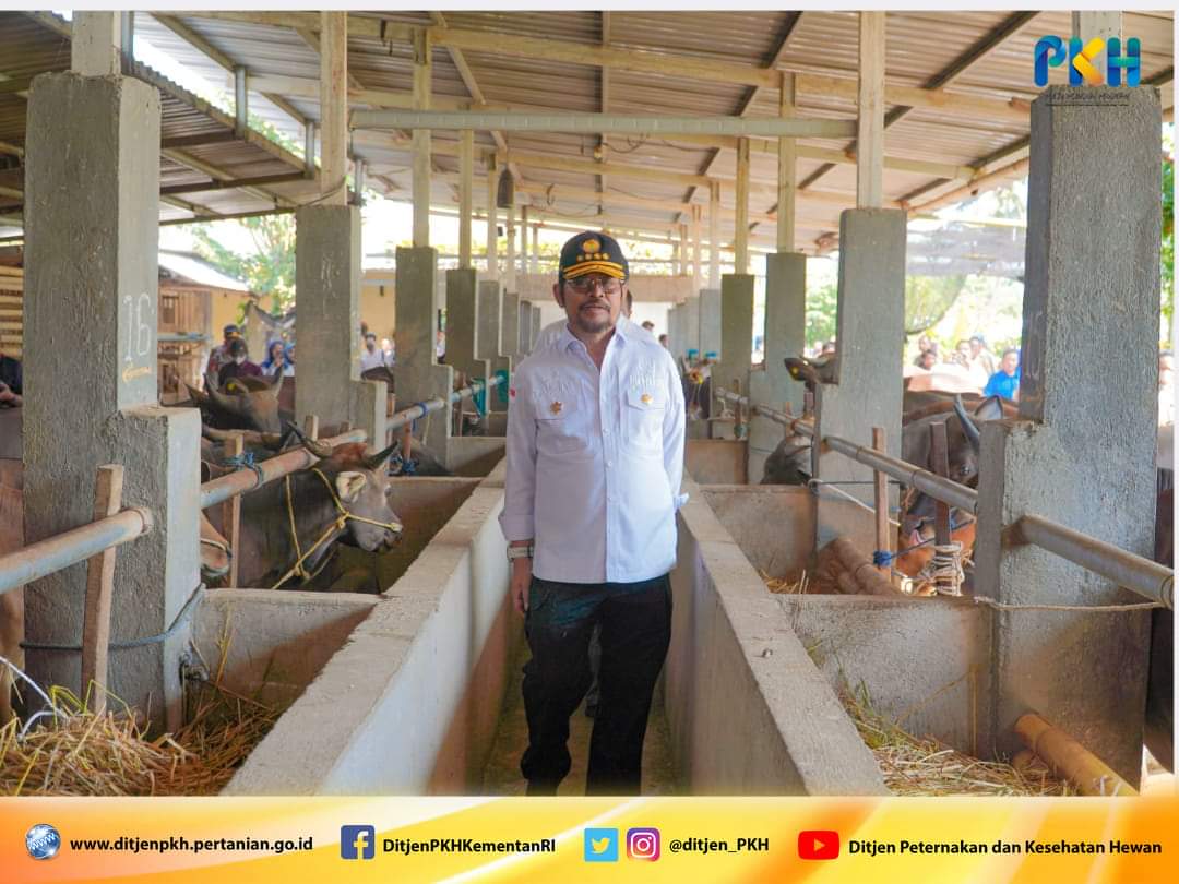 Kepala Dinas Peternakan dan Kesehatan Hewan Provinsi NTB, Muhamad Riadi, S.P, M.Ec.Dev mendampingi Asisten I Bidang Pemerintahan dan Kesejahteraan Rakyat Setda Provinsi NTB, Drs. H. Fathurrahman, M.Si menyerahkan secara simbolis Bantuan Sapi Qurban Presiden...