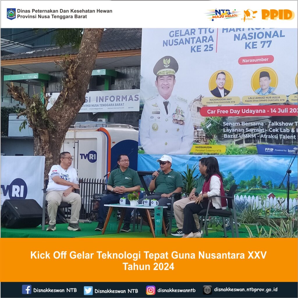 Kepala Dinas Peternakan dan Kesehatan Hewan Provinsi NTB, Muhamad Riadi, SP, M.Ec.Dev menghadiri acara Kick Off Gelar Teknologi Tepat Guna Nusantara XXV Tahun 2024 yang dirangkaikan dengan Hari Koperasi Nasional ke 77 Tahun 2024 yang dilaksanakan di Depan Kantor Dinas Komunikasi Informatika dan Statistik Provinsi NTB yang dihadiri langsung oleh Penjabat Gubernur Nusa Tenggara Barat, Mayjen TNI (Purn) Dr. Hassanudin, S.IP, MM dan Sekretaris Daerah Provinsi NTB, Drs. H. Lalul Gita Ariadi, M.Si serta diikuti oleh seluruh Kepala OPD lingkup Pemerintah Provinsi NTB, Minggu 14 Juli 2024.