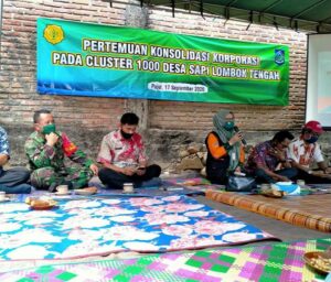 Pertemuan Konsolidasi Korporasi Pada Cluster 1000 Desa Sapi yang diselenggarakan oleh Dinas Peternakan dan Kesehatan Hewan Provinsi NTB di Kecamatan Pujut Kabupaten Lombok Tengah. Kegiatan tersebut di hadiri oleh Kepala Dinas Peternakan Provinsi NTB, Dinas Pertanian Lombok Tengah, Kepala Desa dan Kelompok Ternak dari 5 Desa yaitu Desa Mertak, Pengengat, Suradadi, Teruwai dan Bangket Parak serta Babinkamtibmas.