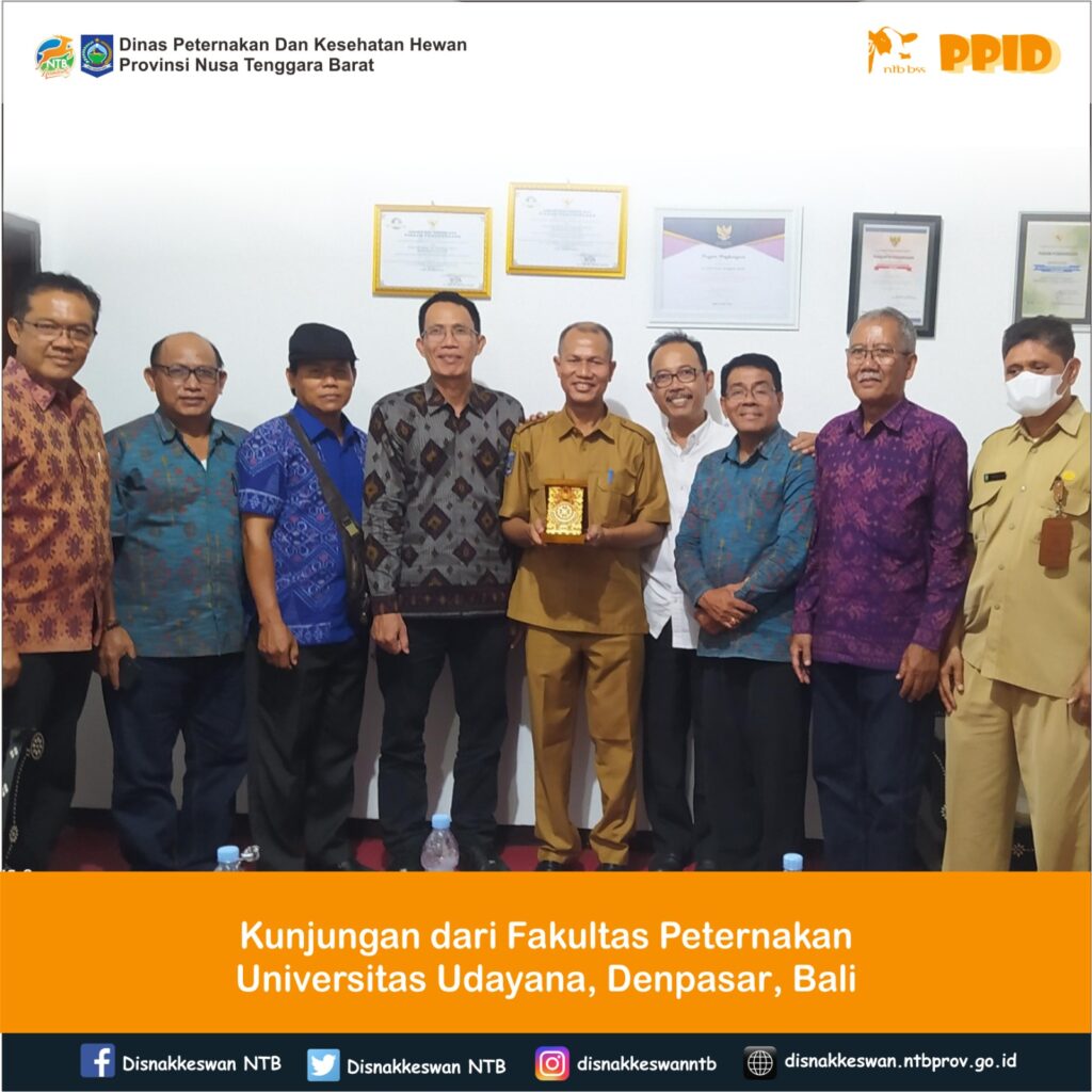 Kepala Dinas Peternakan dan Kesehatan Hewan Provinsi NTB, Muhamad Riadi, SP, M.Ec.Dev menerima kunjungan dari Fakultas Peternakan Universitas Udayana Denpasar Bali yang bertempat di Ruang Kerja Kepala Dinas Peternakan dan Kesehatan Hewan Provinsi NTB, Senin 4 Maret 2024.
