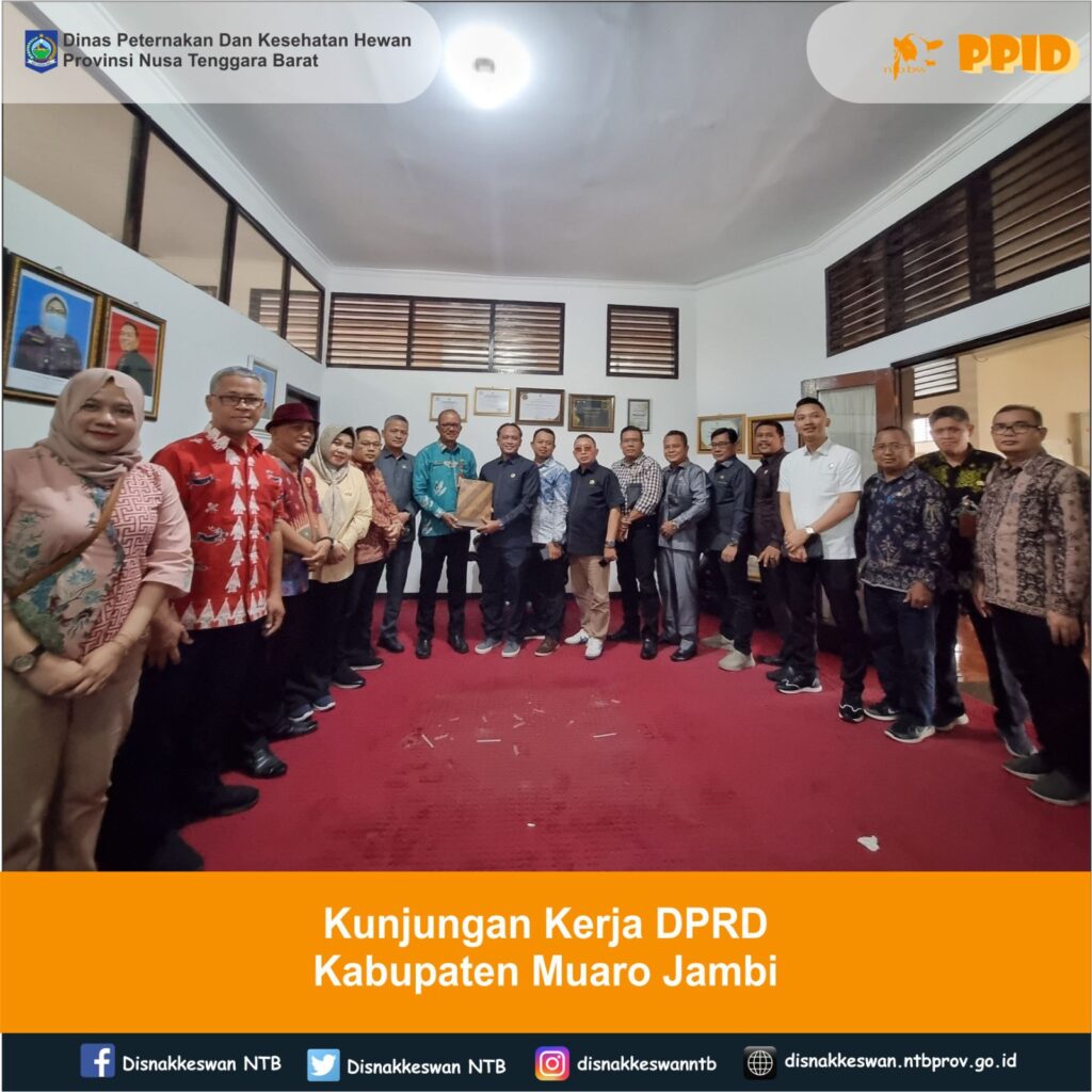 Sekretaris Dinas Peternakan dan Kesehatan Hewan Ptovinsi NTB, Muhammad Nur, S.Pt, M.Si didampingi seluruh Kepala Bidang lingkup Disnakkeswan menerima kunjungan kerja Dewan Perwakilan Rakyat Daerah Kabupaten Muaro Jambi terkait Koordinasi/Konsultasi Gabungan Bapemperda, BK dan Banmus yabg ditetima di Ruang Rapat Kepala Dinas Peternakan dan Kesehatan Hewan Provinsi NTB, Kamis 20 Februari 2025.
