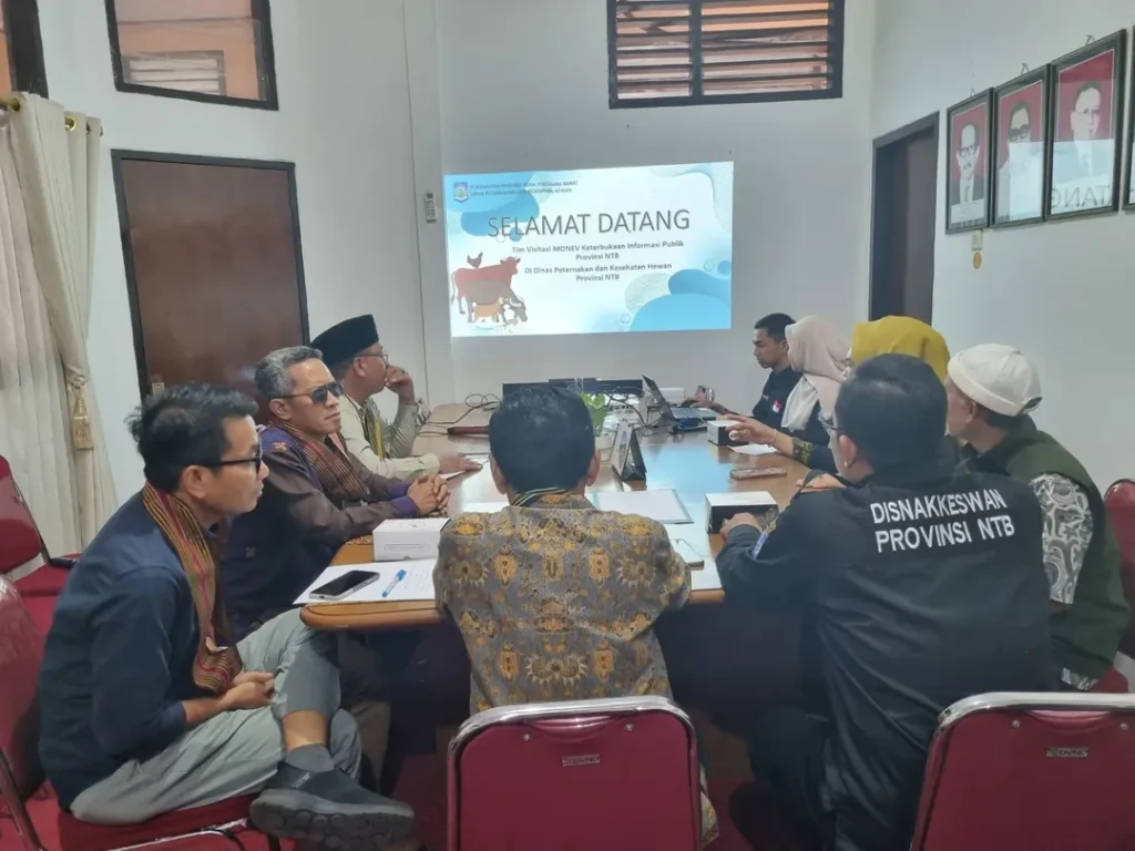 Sekretaris Dinas Peternakan dan Kesehatan Hewan Provinsi Nusa Tenggara Barat, Lalu Amjad, S.H, M.H didampingi Tim Pejabat Pengelola Informasi Daerah (PPID) menerima kunjungan Tim Visitasi Monitoring dan Evaluasi Keterbukaan Informasi Publik dari Komisi Informasi di Ruang Rapat Kepala Dinas, Kamis 13 November 2025.