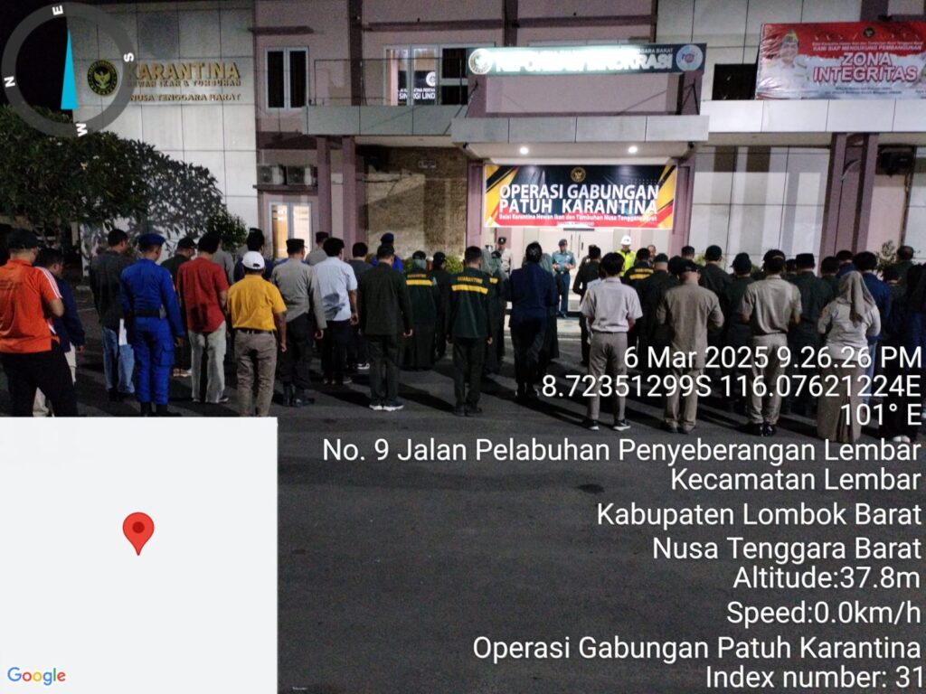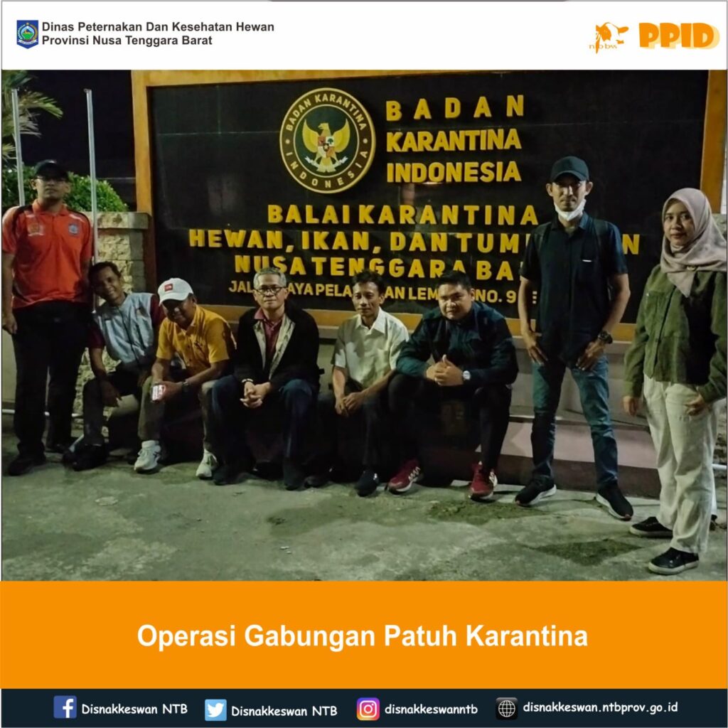 Kepala Bidang Kesehatan Masyarakat Veteriner dan Kepala Bidang Penyuluhan Pengolahan dan Pemasaran Hasil Peternakan beserta jajarannya mengikuti Operasi Gabungan Patuh Karantina dalam rangka meningkatkan kepatuhan dan kesadaran pengguna jasa terhadap peraturan perkarantinaan serta optimalisasi pengawasan lalu lintas komoditas karantina hewan, ikan dan tumbuhan yang melalui Pelabuhan Lembar yang diselenggarakan oleh Balai Karantina Hewan Ikan dan Tumbuhan Nusa Tenggara Barat di Satuan Pelayanan Pelabuhan Lembar, Kamis 6 Maret 2025.
