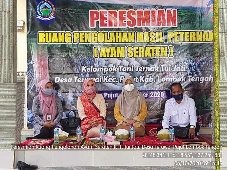 Selasa 06 Oktober 2020 Peresmian Ruang Pengolahan Hasil Peternakan (Ayam Sraten) Kelompok Tani Ternak Tui Jati di Desa Teruwai, Kecamatan Pujut, Kabupaten Lombok Tengah oleh Ketua TP-PKK Provinsi NTB Ibu Niken Zulkieflimasnyah. Turut hadir...