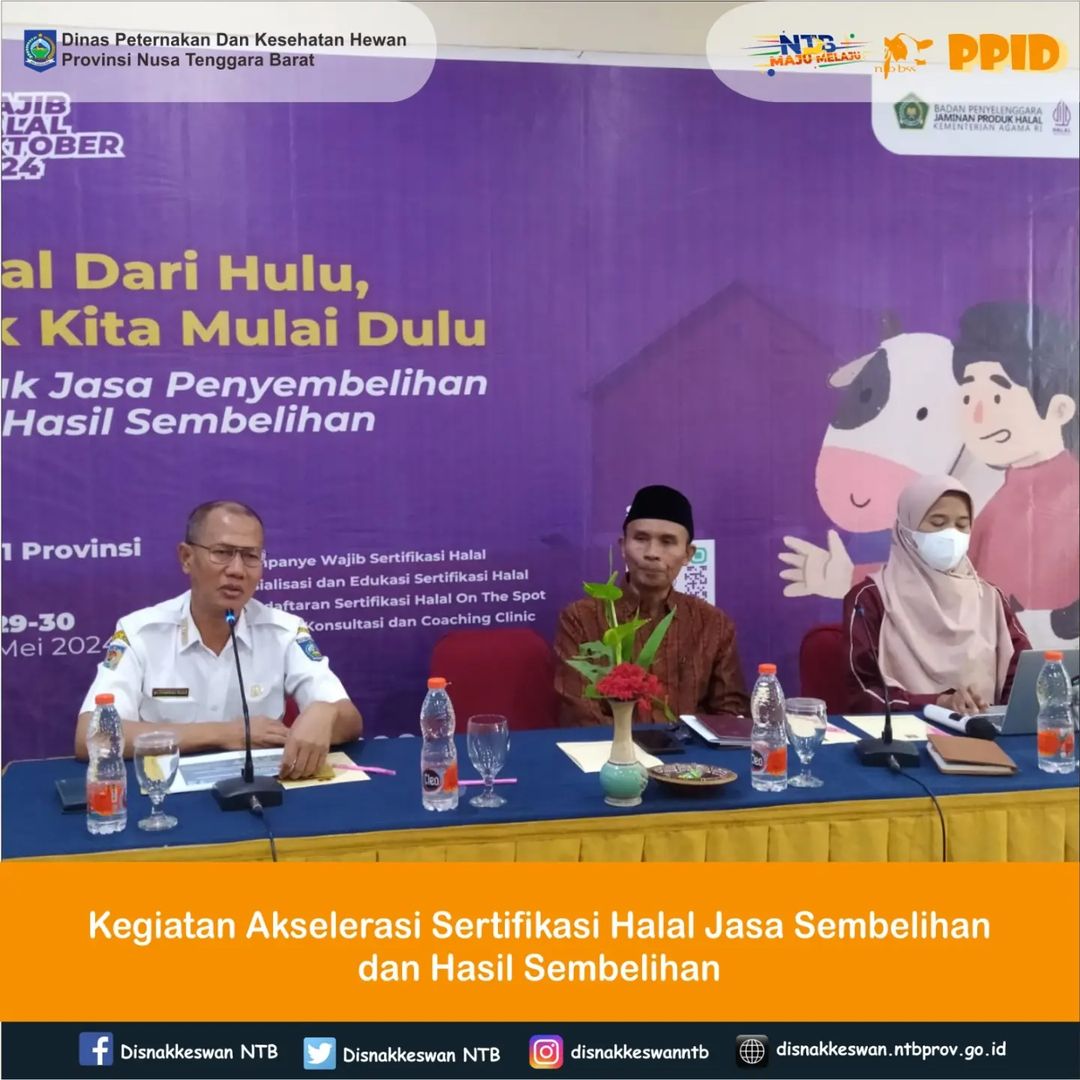 Kepala Dinas Peternakan dan Kesehatan Hewan Provinsi NTB, Muhamad Riadi, SP, M.Ec.Dev menghadiri sekaligus menjadi narasumber pada Kegiatan Akselerasi Sertifikasi Halal Jasa Sembelihan dan Hasil Sembelihan yang dilaksanakan di Hotel Jayakarta Resort dan Spa...