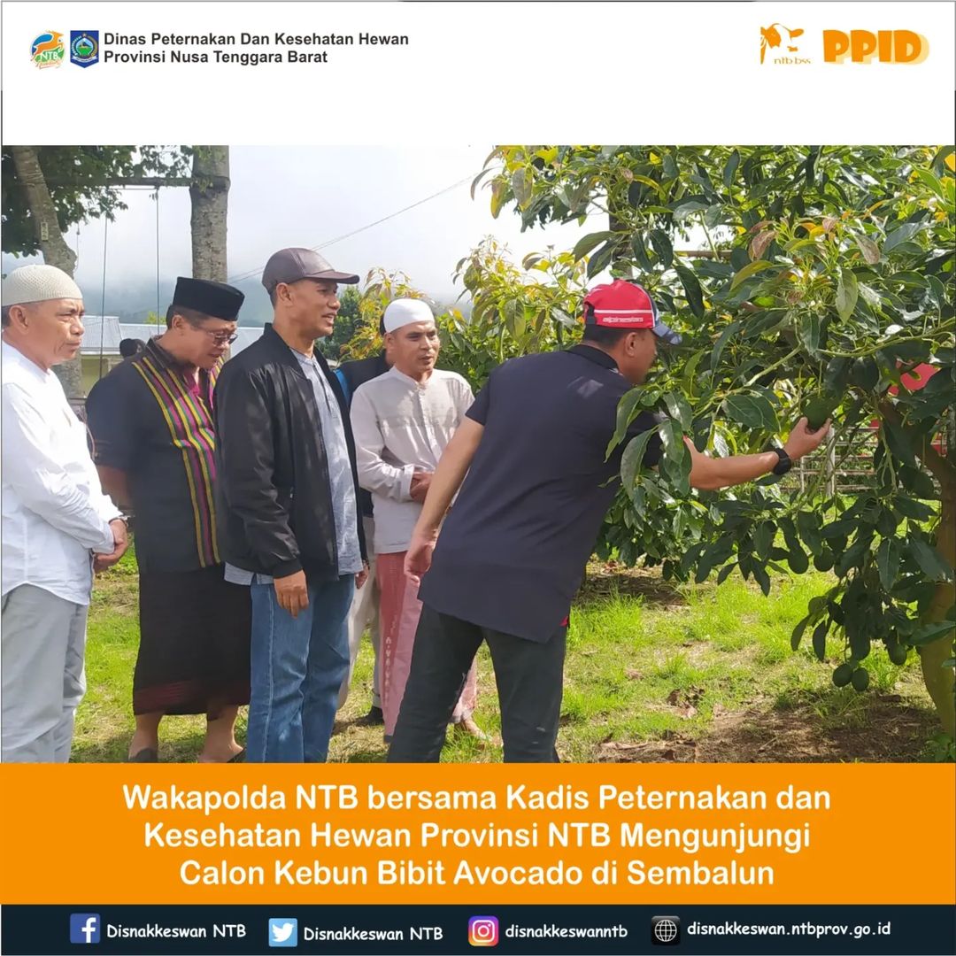 Wakil Kepala Kepolisian Daerah Nusa Tenggara Barat, Brigjen Pol. Drs. Ruslan Aspan bersama Kepala Dinas Peternakan dan Kesehatan Hewan Provinsi NTB, Muhamad Riadi, SP, M.Ec.Dev mengunjungi calon kebun bibit avocado yang berlokasi di Kelompok...