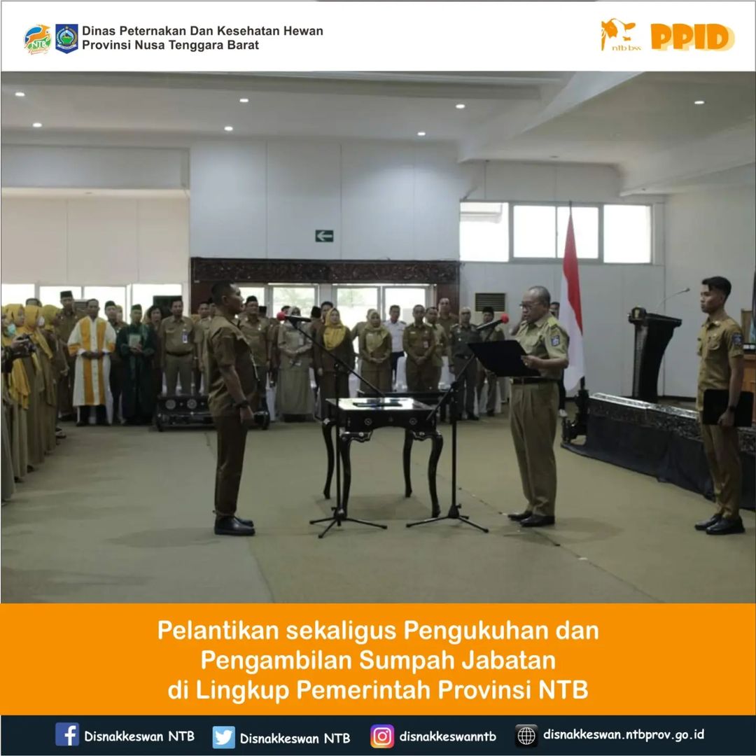 Setelah memberikan arahan pada rapat pembahasan RPJPD NTB Tahun 2025-2045, Kepala Dinas Peternakan dan Kesehatan Hewan Provinsi NTB, Muhamad Riadi, SP, M.Ec.Dev menghadiri Pelantikan sekaligus Pengukuhan dan Pengambilan Sumpah Jabatan terhadap Pejabat Pimpinan Tinggi...