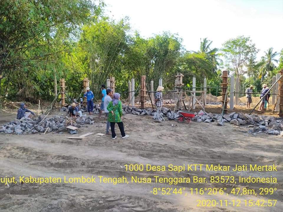 Adapun Lokasi pembangunan kandang adalah di Kelompok Tani Ternak Mekar Jati Desa Mertak Kecamatan Pujut Kabupaten Lombok Tengah. Pembangunan kandang ternak tersebut guna mendukung Program Super Prioritas 1000 Desa Sapi di Kabupaten Lombok Tengah Provinsi Nusa Tenggara Barat.