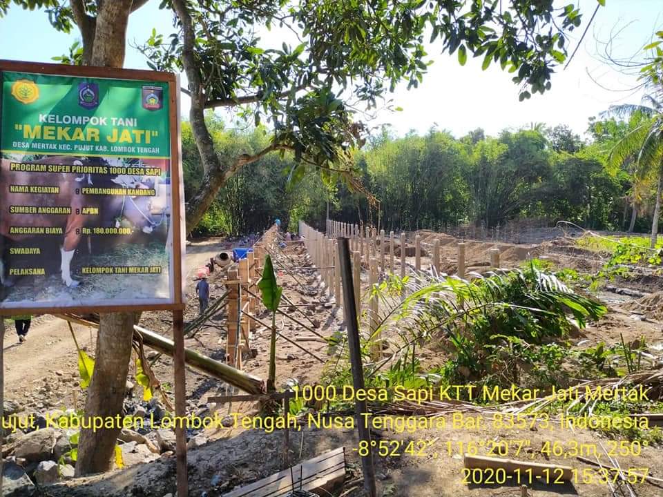 Adapun Lokasi pembangunan kandang adalah di Kelompok Tani Ternak Mekar Jati Desa Mertak Kecamatan Pujut Kabupaten Lombok Tengah. Pembangunan kandang ternak tersebut guna mendukung Program Super Prioritas 1000 Desa Sapi di Kabupaten Lombok Tengah Provinsi Nusa Tenggara Barat.