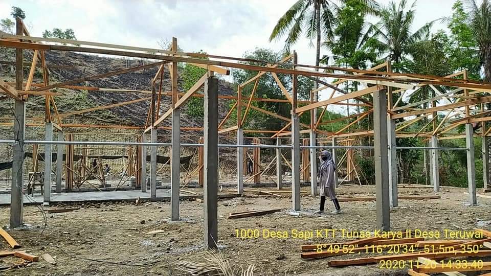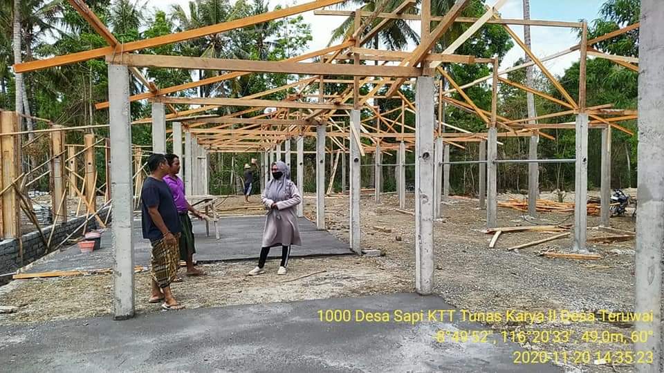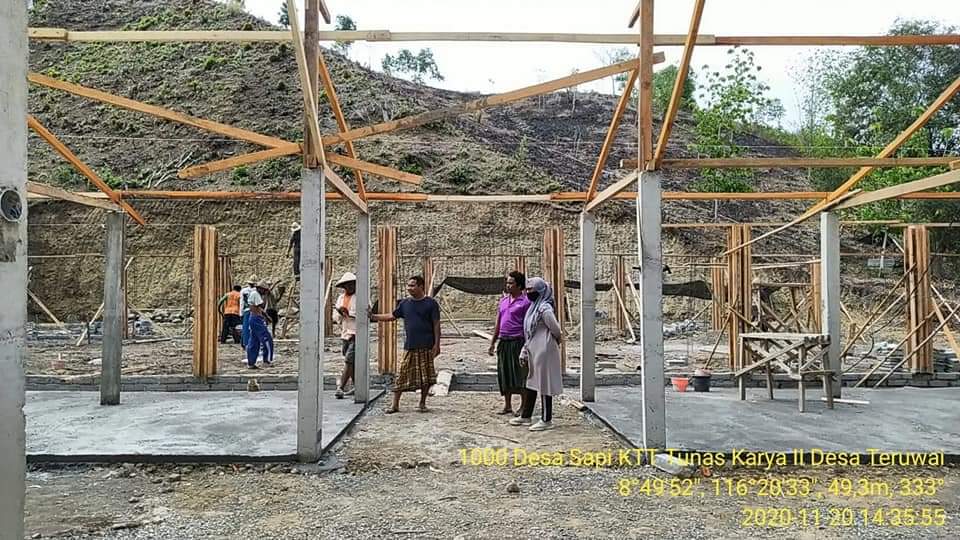 Kepala Dinas Peternakan dan Kesehatan Hewan Provinsi Nusa Tenggara Barat terus memantau perkembangan pembangunan kandang ternak di Kabupaten Lombok Tengah guna mendukung Program Super Prioritas 1000 Desa Sapi di Kabupaten Lombok Tengah Provinsi Nusa Tenggara Barat. Adapun Lokasi pembangunan kandang adalah di Kelompok Tani Ternak Tunas Karya II Dusun Terapi Desa Teruwai Kecamatan Pujut Kabupaten Lombok Tengah.