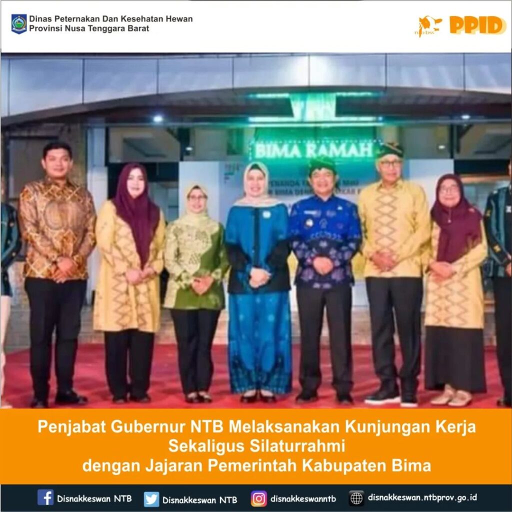 Kepala Dinas Peternakan dan Kesehatan Hewan Provinsi NTB, Muhamad Riadi, SP, M.Ec.Dev. menghadiri sekaligus mendampingi Penjabat Gubernur Nusa Tenggara Barat, Mayjen TNI (Purn) Hassanudin, S.IP, MM beserta istri Ibu Dessy Hassanudin melaksanakan kunjungan kerja sekaligus silaturrahmi dengan jajaran Pemerintah Kabupaten Bima di Kantor Bupati Bima, Jumat 26 Juli 2024.