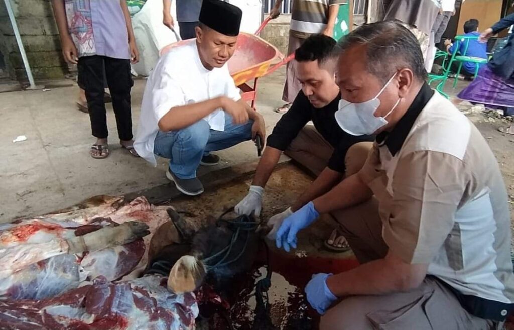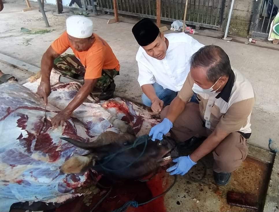 Kamis, 29 Juni 2023 Kepala Dinas Peternakan dan Kesehatan Hewan Provinsi NTB, Muhamad Riadi, S.P, M.Ec.Dev didampingi oleh Kepala Bidang Kesehatan Masyarakat Veteriner bersama tim pengawasan hewan qurban Provinsi NTB memantau langsung penyembelihan dan pemeriksaan hewan qurban di Nusa Tenggara Barat.