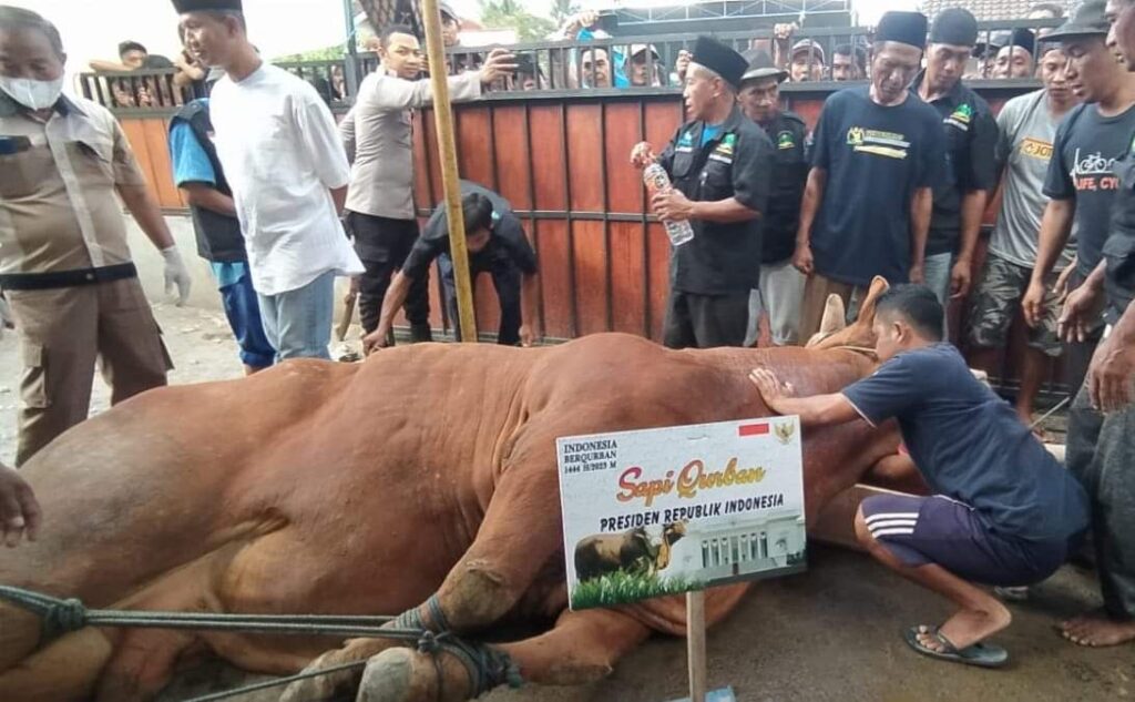 Sapi Limousin seberat 1,04 ton di sembelih sesuai syariat islam yang dilakukan tenaga ahli untuk menjaga higenist daging. Setelah dilakukan penyembelihan dan pengemasan daging sapi qurban ini akan di distribusikan ke semua dusun di Desa Ombe Baru. Namun spesifiknya akan diberikan kepada yatim piatu dan kaum dhuafa di desa setempat.
