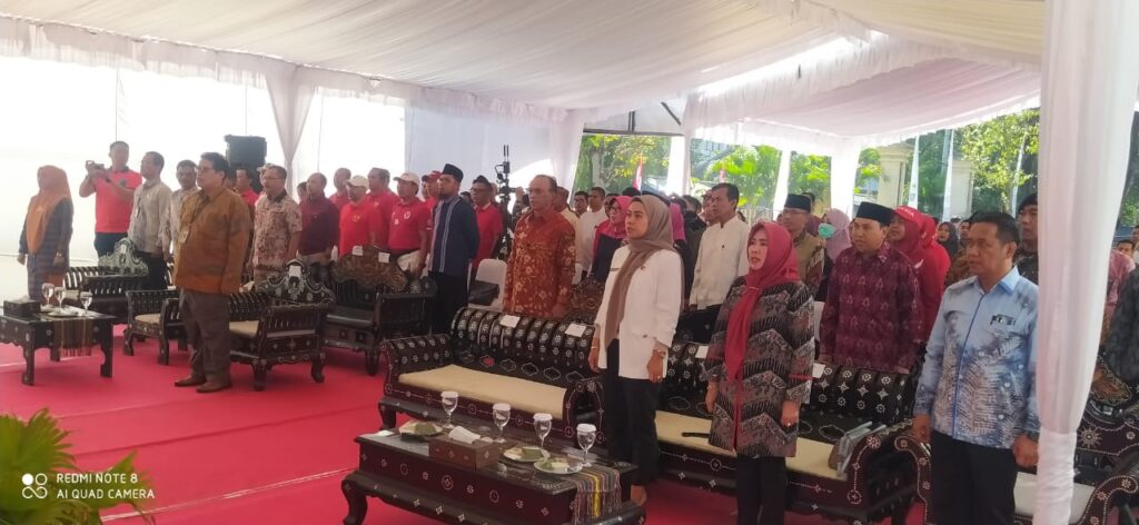Setelah mengikuti Launching Pembagian dan Pengibaran Bendera Merah Putih secara serentak, Kepala Dinas Peternakan dan Kesehatan Hewan Provinsi NTB, Muhamad Riadi, S.P, M.Ec.Dev menghadiri Peresmian Gedung Layanan Perpustakaan Provinsi NTB yang diresmikan langsung oleh Gubernur Nusa Tenggara Barat, Dr. H. Zulkieflimansyah, M.Sc dan Wakil Gubernur Nusa Tenggara Barat, Dr. Ir. Hj. Sitti Rohmi Djalillah, M.Pd yang dilaksanakan di Bumi Perkemahan Jaka Mandala, Jumat (11/08/2023).