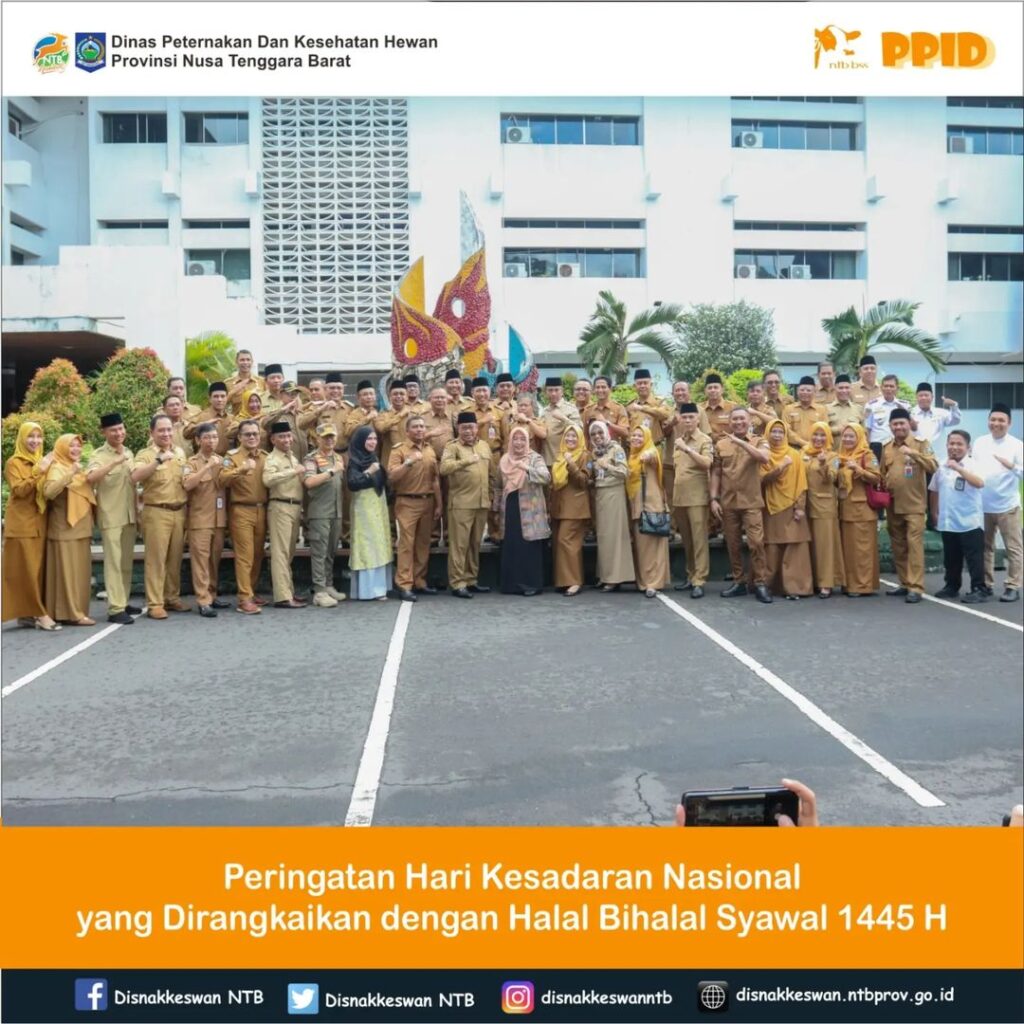 Kepala Dinas Peternakan dan Kesehatan Hewan Provinsi NTB, Muhamad Riadi, SP, M.Ec.Dev mengikuti kegiatan apel Peringatan Hari Kesadaran Nasional yang dirangkaikan dengan Halal Bihalal Syawal 1445 H, yang dilaksanakan di Lapangan Bumi Gora Kantor Gubernur NTB, Selasa, 16 April 2024.
