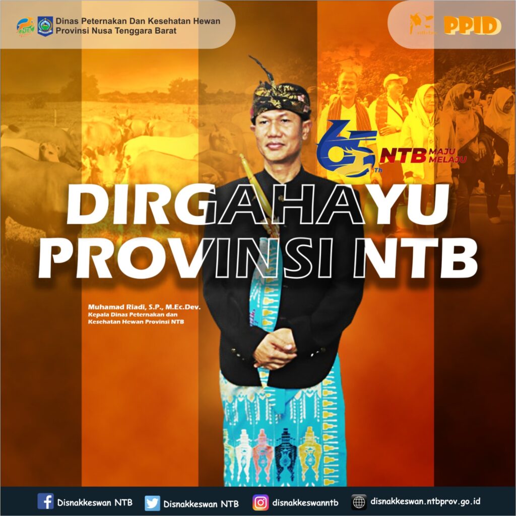 Kepala Dinas Peternakan dan Kesehatan Hewan Provinsi NTB, Muhamad Riadi, SP, M.Ec.Dev didampingi oleh seluruh Kepala Bidang/Kepala UPT lingkup Disnakkeswan NTB menghadiri Peringatan Hari Ulang Tahun ke 65 Provinsi Nusa Tenggara Barat yang diselenggarakan di Kabupaten Sumbawa, dimana kegiatan ini berlangsung di Halaman Kantor Bupati Sumbawa, Minggu 17 Desember 2023.