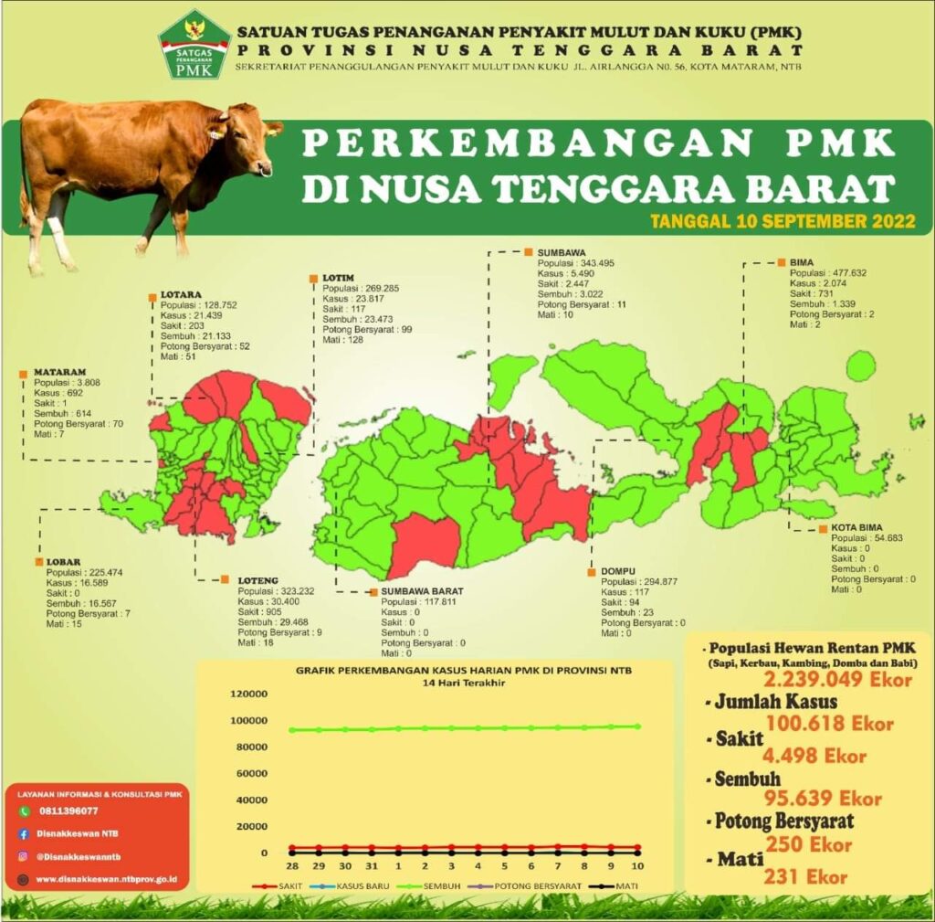 PERKEMBANGAN DATA PMK DI PROVINSI NTB oleh Disnakkeswan Prov.NTB · 15 September 2022 Update Data Perkembangan PMK di Provinsi NTB Per tanggal 13 September 2022