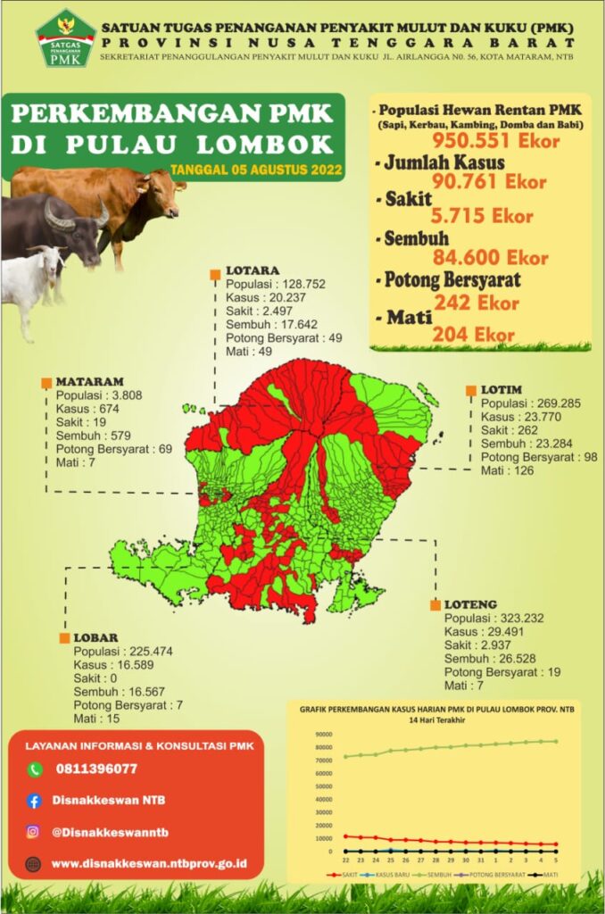 PERKEMBANGAN PMK DI PULAU LOMBOK oleh Disnakkeswan Prov.NTB · 8 Agustus 2022 Update Data Perkembangan PMK di Pulau Lombok Per tanggal 7 Agustus 2022