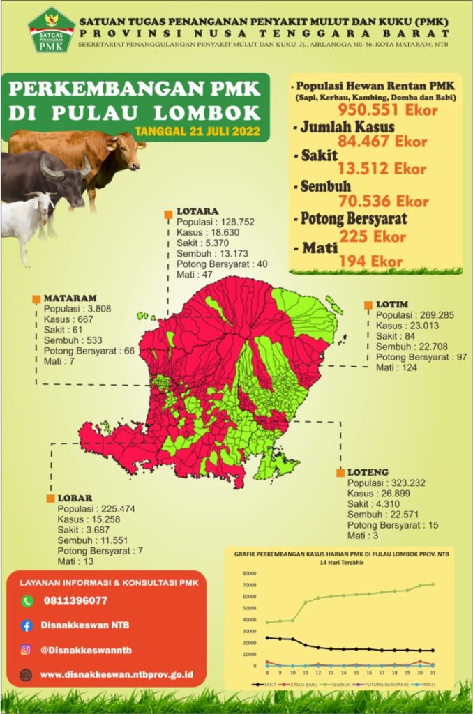 PERKEMBANGAN PMK DI PULAU LOMBOK oleh Disnakkeswan Prov.NTB · 22 Juli 2022 Update Data Perkembangan PMK di Pulau Lombok Per tanggal 22 Juli 2022