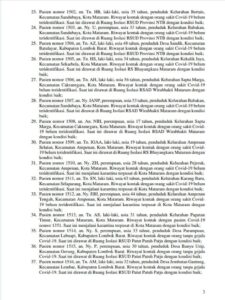 Kemudian berdasarkan hasil test swab didapat tambahan 40 orang pasien positif yang berasal dari Mataram (24 orang), Lombok Barat (15 orang), dan Lombok Tengah (1 orang). Dengan adanya 40 pasien positif dan 14 pasien sembuh, maka hingga saat ini di Nusa Tenggara Barat telah terkonfirmasi total 1519 pasien positif dengan 954 pasien sembuh, 77 meninggal, dan 488 lainnya dalam kondisi membaik di bawah perawatan medis.