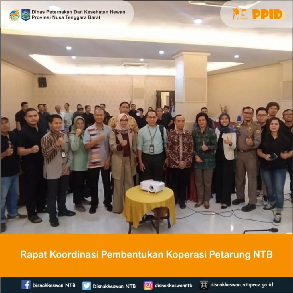 Haii SobaTernak.. dari rapat terkait dengan LSD, Kepala Dinas Peternakan dan Kesehatan Hewan Provinsi NTB, Muhamad Riadi, S.P.,M.Ec.Dev menghadiri sekaligus menjadi narasumber pada acara kegiatan Rapat Koordinasi Pembentukan Koperasi Petarung NTB yang dilaksanakan di Hotel Puri Indah Mataram, Selasa 26 September 2023.