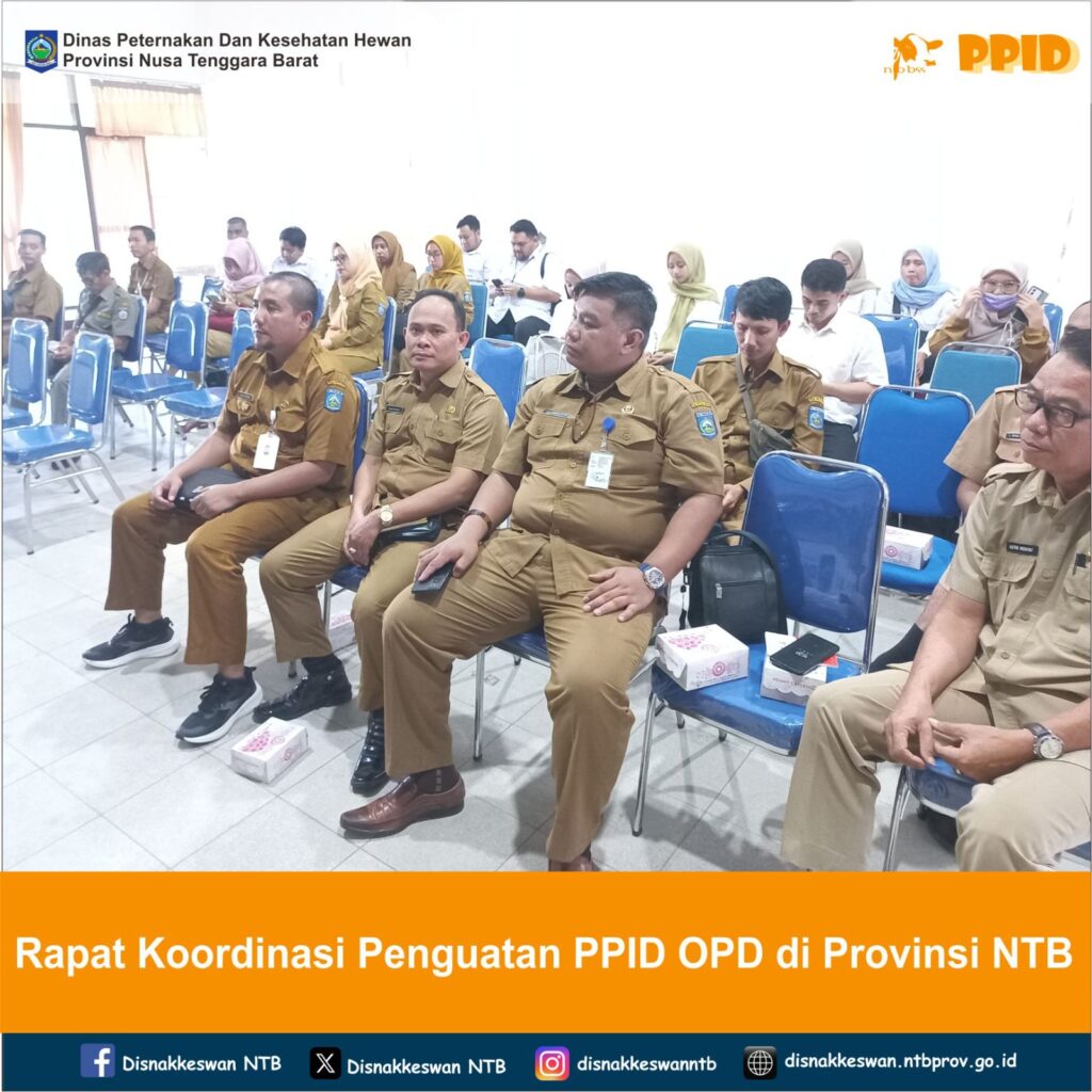 Senin, 19 Mei 2025, Sekretaris Dinas Peternakan dan Kesehatan Hewan Provinsi NTB, Lalu Amjad, S.H., M.H., selaku Ketua Tim PPID Dinas Peternakan dan Kesehatan Hewan Provinsi NTB menghadiri Rapat Koordinasi Penguatan PPID OPD di Aula Dinas Komunikasi, Informatika dan Statistika (Diskominfotik) Provinsi NTB. Pada rakor tersebut, masing-masing PPID OPD diminta agar berperan aktif dalam mempublikasikan kegaitan di OPD-nya, baik melalui website, media sosial, dan media lainnya serta menyampaikan ke website Diskominfotik. Selain itu juga Diskominfotik akan melaksanakan pelatihan untuk tenaga videografer/fotografer dan rilis berita masing-masing OPD.