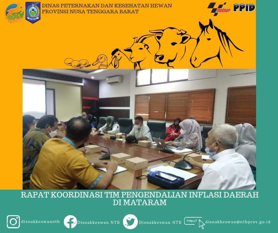 Jumat, 25 Maret 2022 Kepala Dinas Peternakan dan Kesehatan Hewan Provinsi NTB didampingi Sub Koordinator Tata Niaga Ternak menghadiri Rapat Koordinasi TPID terkait dengan satgas pangan yang bertempat di Ruang Rapat Anggrek Kantor Gubernur NTB.