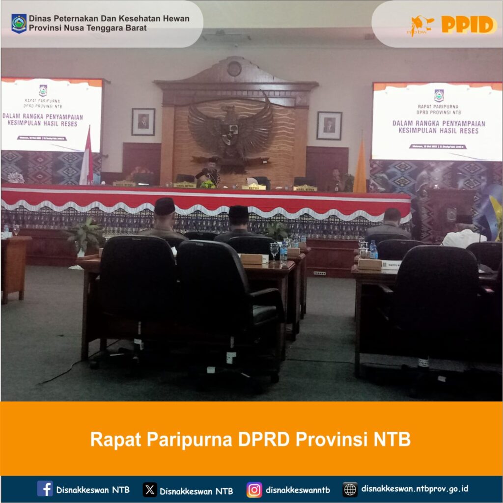 Sekretaris Dinas Peternakan dan Kesehatan Hewan Provinsi Nusa Tenggara Barat, Lalu Amjad, S.H, M.H mewakili Kadis menghadiri Rapat Paripurna Dewan Perwakilan Rakyat Daerah (DPRD) Provinsi Nusa Tenggara Barat dalam rangka penyampaian kesimpulan hasil reses masing-masing Daerah Pilihan. Kesimpulan hasil reses tersebut selanjutnya akan dimasukkan dalam Musyawarah Perencanaan Pembangunan Tahun 2025 yang bertempat di Ruang Rapat Paripurna Dewan Perwakilan Rakyat Daerah Provinsi Nusa Tenggara Barat.