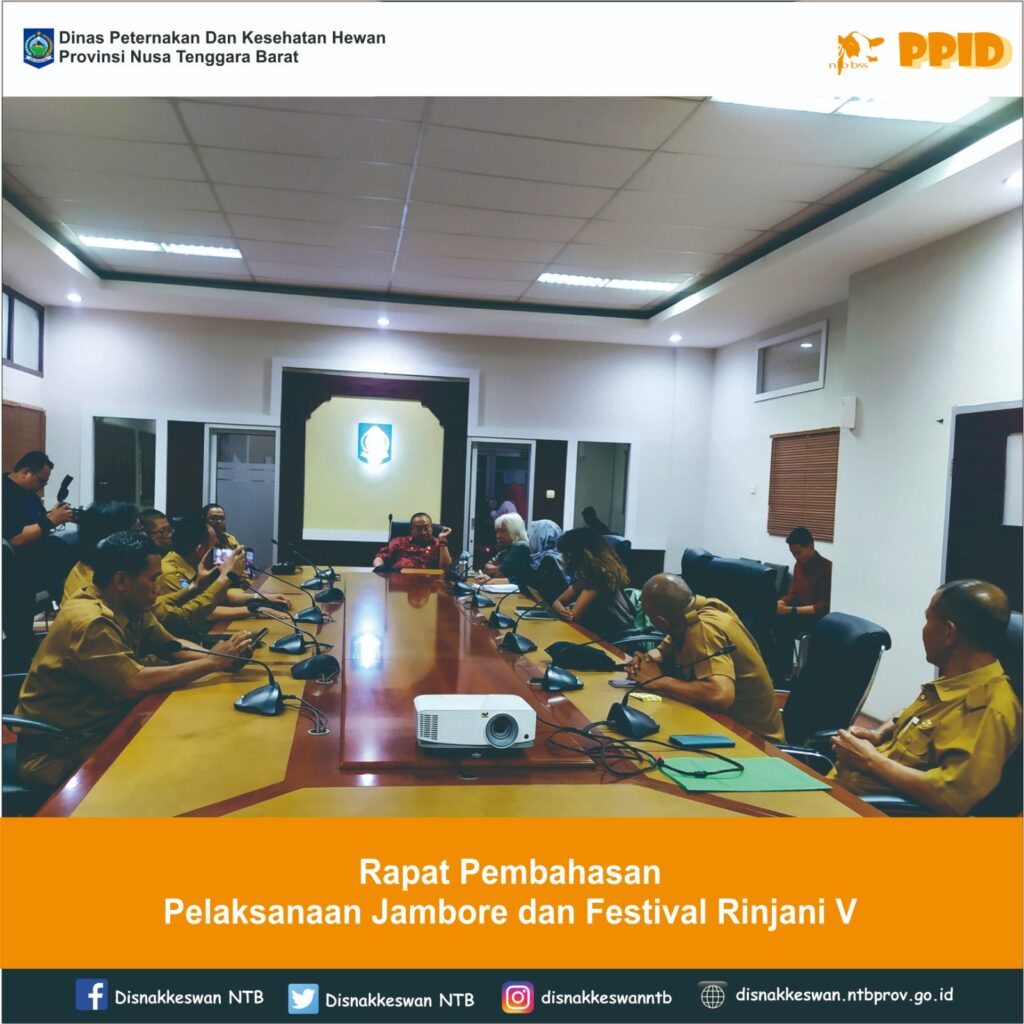Kepala Dinas Peternakan dan Kesehatan Hewan Provinsi NTB, Muhamad Riadi, SP, M.Ec.Dev menghadiri Rapat Pembahasan Pelaksanaan Jambore dan Festival Rinjani V yang dipimpin langsung oleh Sekretaris Daerah Provinsi NTB, Drs. H. Lalu Gita Ariadi, M.Si yang dilaksanakan di Ruang Rapat Anggrek Kantor Gubernur Nusa Tenggara Barat, Selasa 15 Oktober 2024.