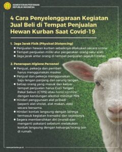Di masa pandemi saat ini berbagai protokol kesehatan harus kita taati untuk kebaikan kita bersama. Apalagi menjelang hari besar umat muslim yakni hari raya Idul Adha. Segala sesuatunya harus di perhatikan baik-baik, termasuk tata cara untuk kegiatan penyelenggaran jual beli hewan kurban. Mau tau gimana langkah-langkahnya? Yuk, cek infografis kita kali ini ya!