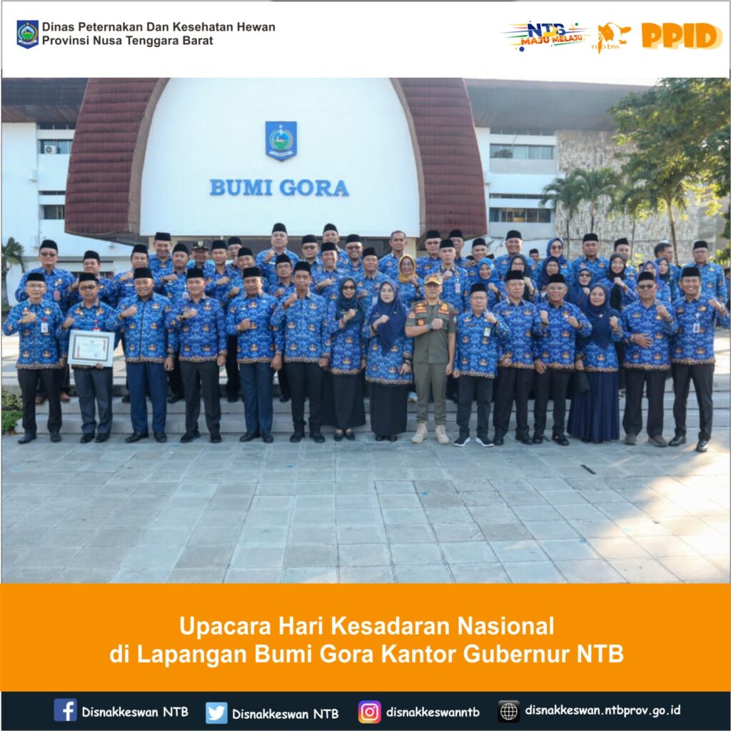 Kepala Dinas Peternakan dan Kesehatan Hewan Provinsi NTB, Muhamad Riadi, SP, M.Ec.Dev menghadiri Upacara Hari Kesadaran Nasional yang dipimpin langsung oleh Penjabat Gubernur Nusa Tenggara Barat, Mayjen TNI (Purn) Dr. Hassanudin, S.IP, MM di Lapangan Bumi Gora Kantor Gubernur Nusa Tenggara Barat, Rabu 17 Juli 2024.