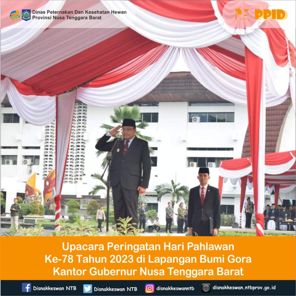 Kepala Dinas Peternakan dan Kesehatan Hewan Provinsi NTB, Muhamad Riadi, SP, M.Ec.Dev menghadiri upacara peringatan Hari Pahlawan ke-78 tahun 2023 di Lapangan Bumi Gora Kantor Gubernur Nusa Tenggara Barat, Jumat 10 November 2023.