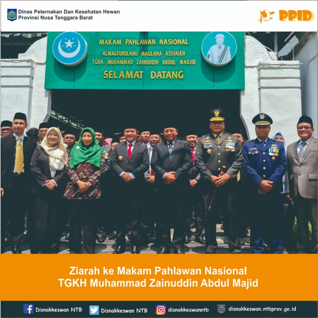 Setelah mengikuti Upacara Bendera Hari Pahlawan di Lapangan Sangkareang, Kepala Dinas Peternakan dan Kesehatan Hewan Provinsi NTB, Muhamad Riadi, SP, M.Ec.Dev beserta rombongan Kepala OPD Lingkup Pemerintah Provinsi NTB turut serta mendampingi Penjabat Gubernur Nusa Tenggara Barat, Hassanudin melaksanakan ziarah ke makam Pahlawan Nasional TGKH Muhammad Zainuddin Abdul Majid di Kompleks Pondok Pesantren Nahdlatul Wathan Diniyah Islamiyah, Pancor, Lombok Timur, Minggu 10 November 2024.